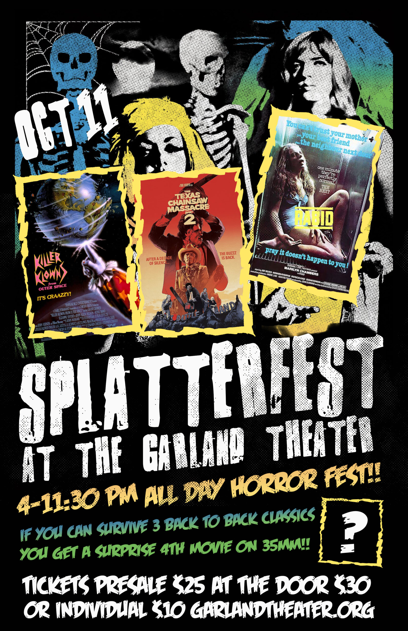 « All EventsThis event has passed.Splatterfest All Day Horror FestOctober 11 @ 4:00 pm« The Witches (1990) Free AdmissionThe Witches (1990) Free with Movie Club » Add to calendar Google Calendar iCalendar Outlook 365 Outlook Live Details Date: October 11 Time: 4:00 pm Event Categories: Showtime, Special Event